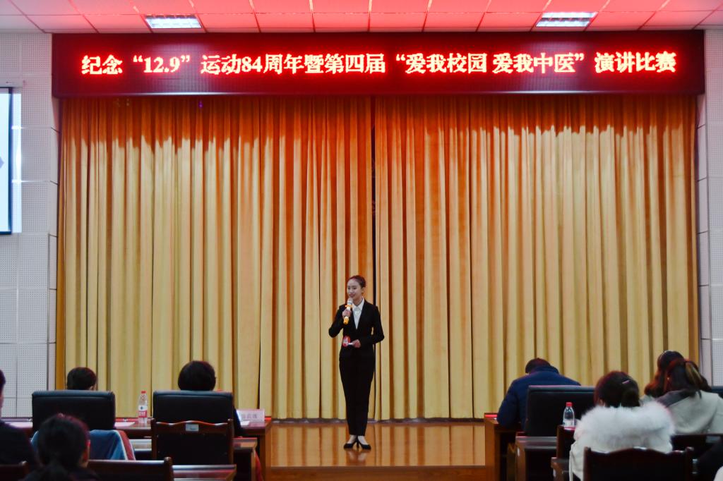 在纪念“12.9”运动84周年之际,举办本次“爱我校园爱我中医”演讲比赛也是一次深刻的爱国主义教育,让新时代的青年学子居安思危,从身边小事做起,爱专业,爱岗位,爱学校,爱国家,更加牢固树立“四个意识”,增强“四个自信”。