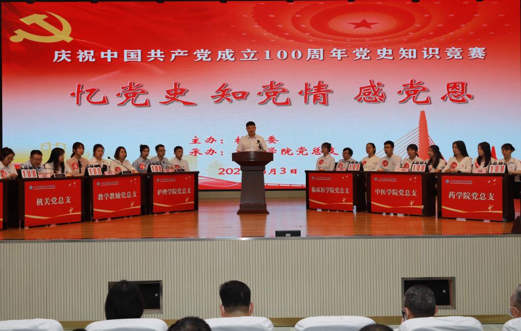 比赛采取积分制,分个人必答、小组必答、抢答、风险答题和附加题五个环节,对《中国共产党简史》《文献中的百年党史》等党史知识进行竞赛,以促进全校广大党员干部和师生员工加强对党史的学习,知党情而感党恩。经激烈角逐,中医学院党总支获得一等奖,附属富临医院党总支和药学院党总支分别获得二等奖,教学教辅党总支、针灸推拿学院党总支、机关党总支分别获得三等奖;中医学院党总支刘嘉诚、附属富临医院党总支罗晓容和药学院党总支李莉获“答题能手”称号。