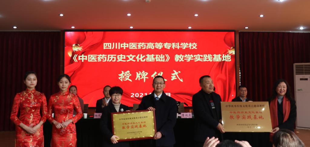 12月21日,我校在三台县中医院举行了四川省高校中华优秀传统文化重点建设课程《中医药历史文化基础》教学实践基地授牌仪式,向三台县中医院、四川省中兴药业有限公司授予教学实践基地牌匾,并为两位兼职教师颁发聘书。我校2021级中药学创新试验班、中医学卓越班学生在两个基地开展了首次课程见习活动,接受了一次生动的中医药历史文化熏陶。